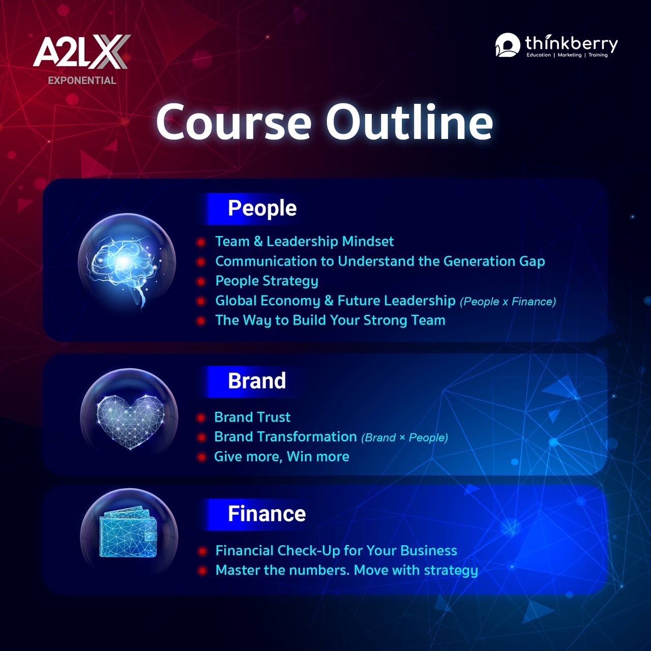 เรียนรู้แก่นธุรกิจแบบครบวงจร ที่ออกแบบมาเพื่อผู้นำยุคใหม่ที่ต้องบริหารธุรกิจ “การเงิน | การสร้างแบรนด์ | การบริหารคน” ให้คุณพร้อมสเกลธุรกิจให้เติบโตแบบ 𝗘𝘅𝗽𝗼𝗻𝗲𝗻𝘁𝗶𝗮𝗹