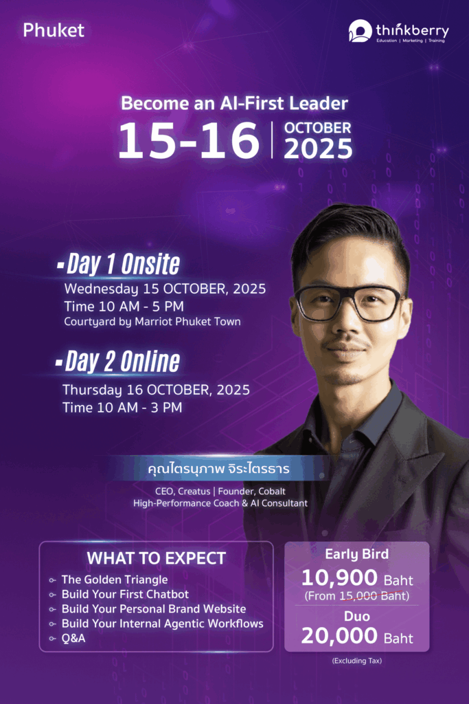 👨🏫 Instructor: Jedi Trinupap Jiratraitharn, CEO of Creatus | Founder, Cobalt High-Performance Coach & AI Consultant
